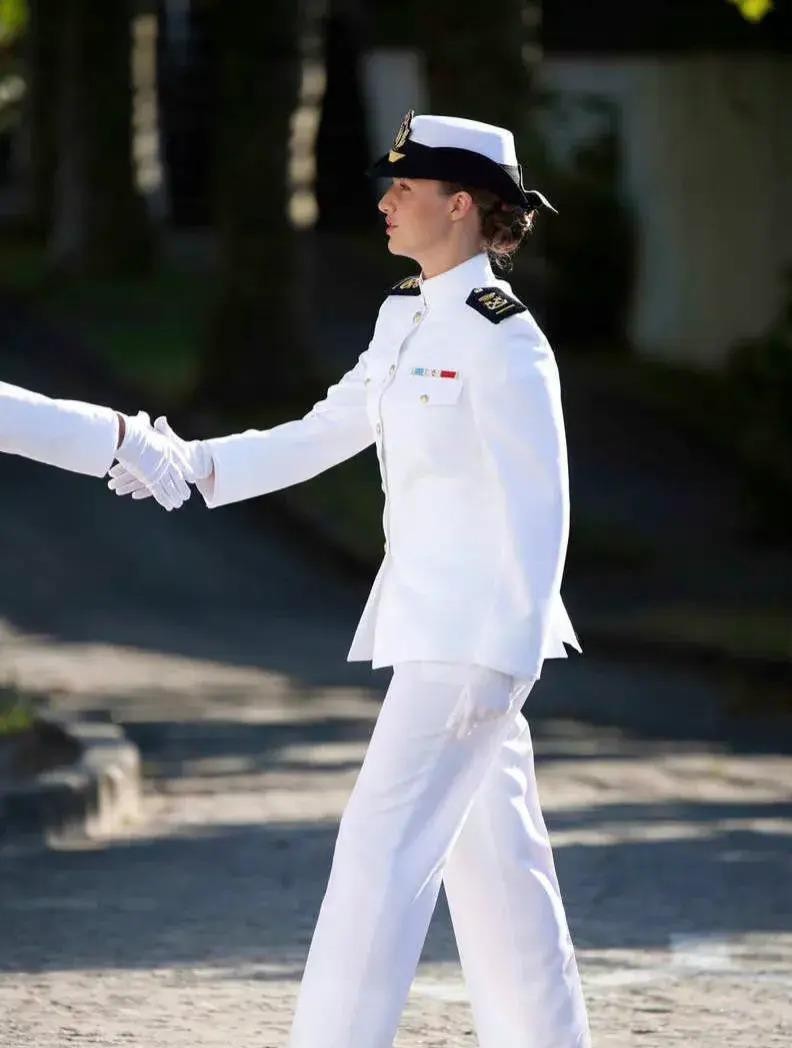 想象一下,如果迪士尼的公主们穿上了海军制服,会是什么样子? 这不是幻想,这是现实。 西班牙的莱昂诺尔公主,一个19岁的年轻女孩,刚刚解锁了她的海军新装。 这不仅仅是一套衣服,这是她作为未来女王的第一步。 制服的蓝白相间,仿佛海浪拍打着岩石,而她,就是那屹立不倒的灯塔。