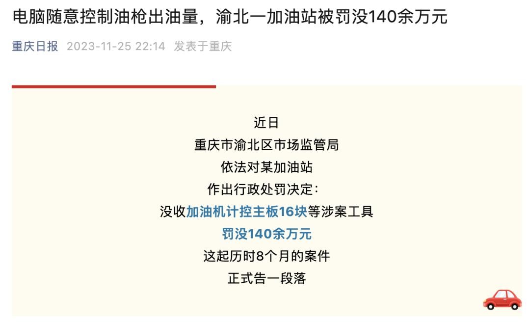 就在不久前,重庆渝北就有一家私人加油站被罚了140万……