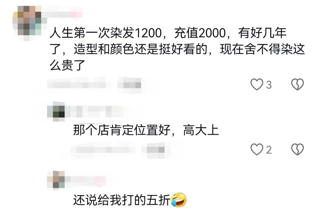 @Mini:人生第一次染发1200,充值2000,有好几年了,造型和颜色还是挺好看的,现在舍不得染这么贵了