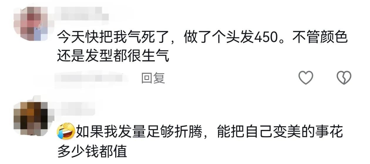 @不如吃茶去:只要托尼老师做得好,钱的话在自己接受范围之内就行。毕竟这个钱花的能让你开心~