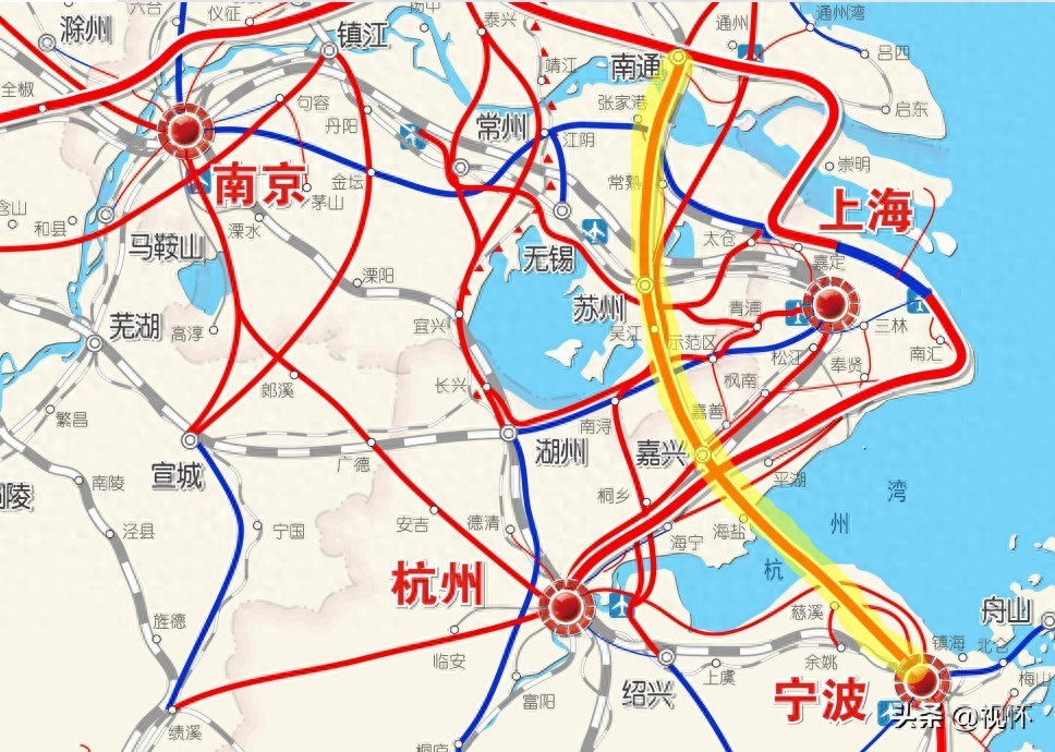目前宁波至上海则需先经过省会杭州,再向东前往上海,经过的线路主要有杭甬高铁和沪杭高铁。从通苏嘉甬高铁规划的车站来看,嘉兴南站将进行改建,通苏嘉甬高铁将引入既有沪杭车场。所以,未来通苏嘉甬高铁一旦建成,宁波可直接通过它跨过杭州湾抵达嘉兴南站,然后衔接沪杭高铁到达上海,大大缩短通行里程。