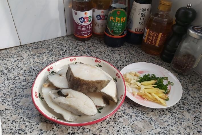 2、这道菜我用的是冷冻的比目鱼鱼块,已经处理好了,解冻之后直接就可以来操作,大家也可以用新鲜的比目鱼来操作。