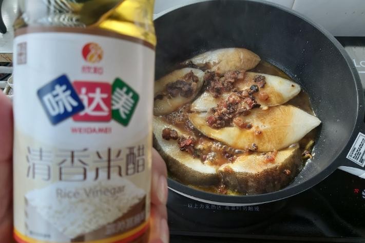 5、撒上细砂糖和米醋,用量可以根据各个人的喜好和口味来适当添加,一般烹饪鱼的时候都会加一点醋,就能够起到提鲜的作用。