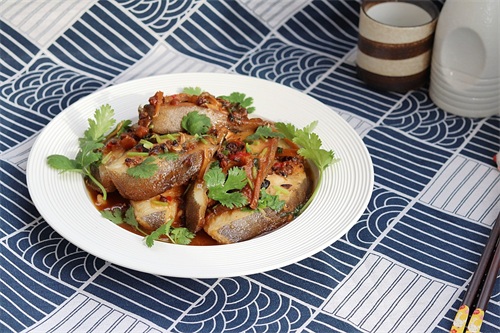 【烹饪食材】:比目鱼500克,辣酱一勺,食用油一勺,酱一小块,葱花适量,蒜末少许,花椒少许,香菜一根,酱油一勺,糖两勺,米醋两勺。