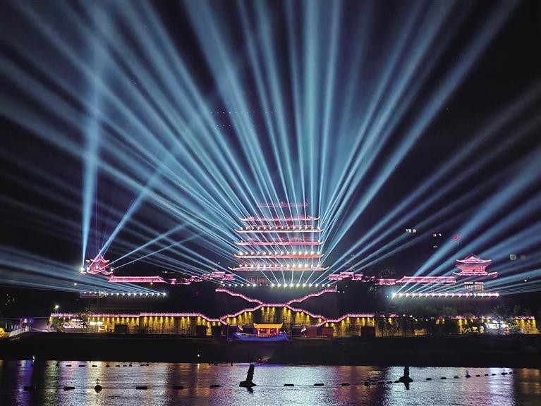 沅水畔,涉江楼的绚丽灯光秀。