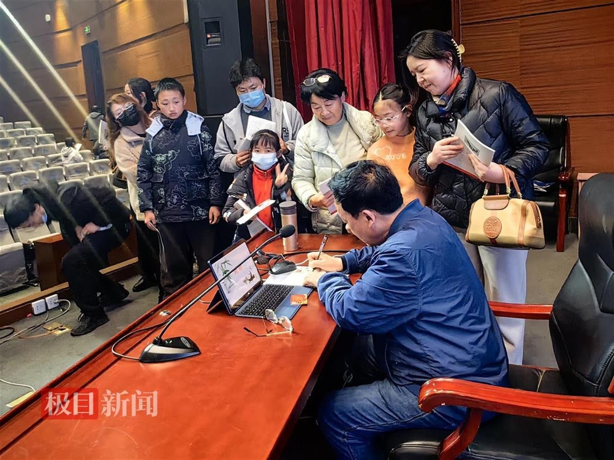 讲座结束后,读者们的热情丝毫不减,纷纷涌上讲台,拿着讲座明信片、笔记本、书籍,拉着主讲人签名、合影留念。读者金先生说,这场大熊猫讲座,巧妙融合自然科普与美术艺术欣赏,是一场不可多得的文化盛宴。