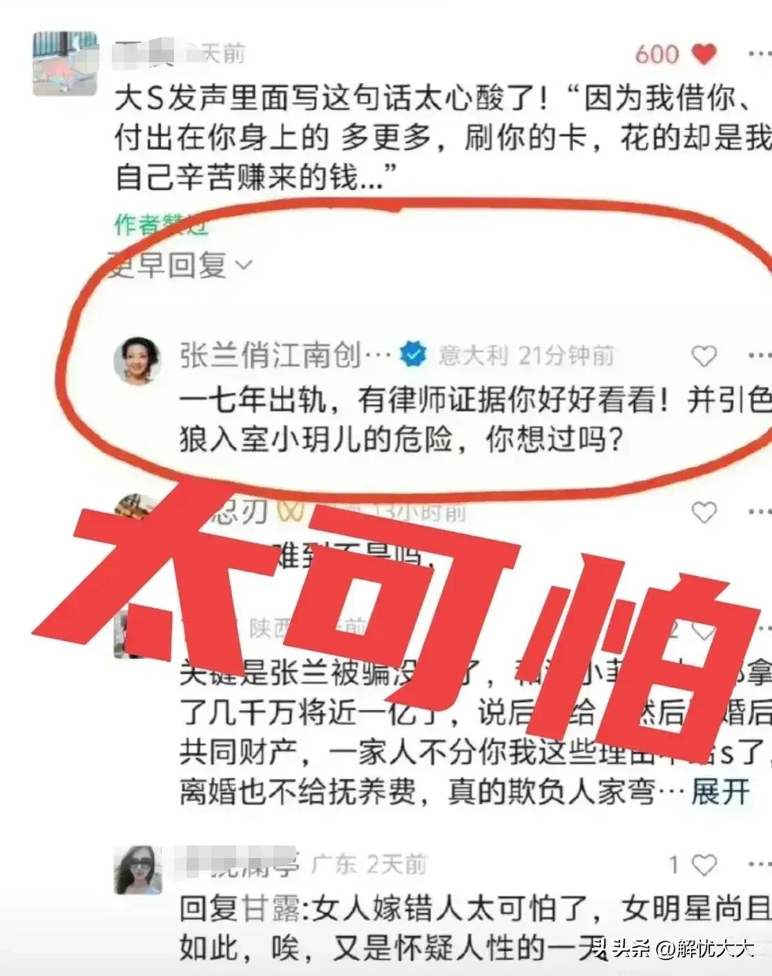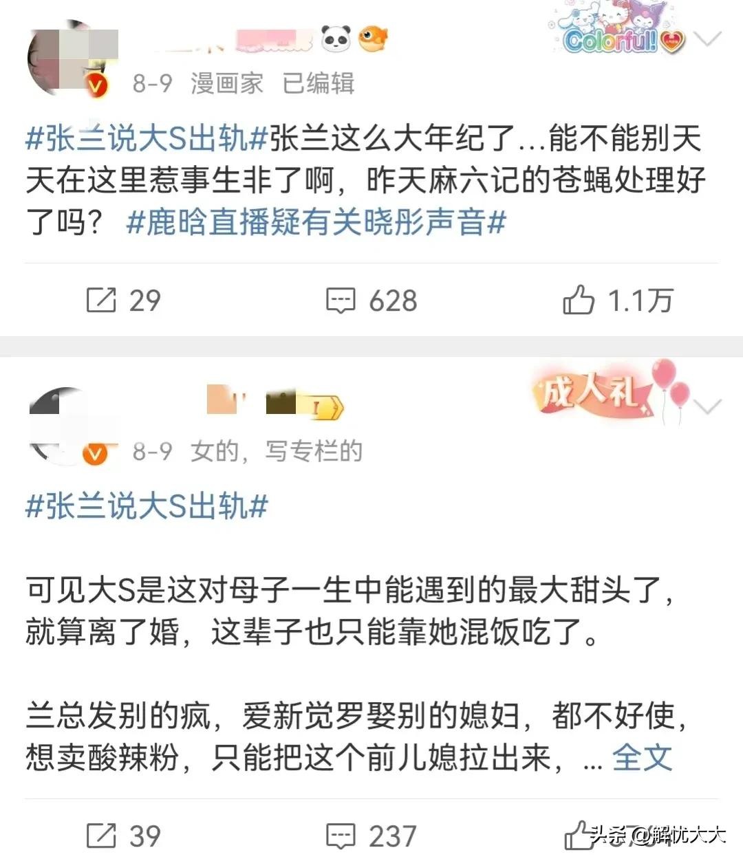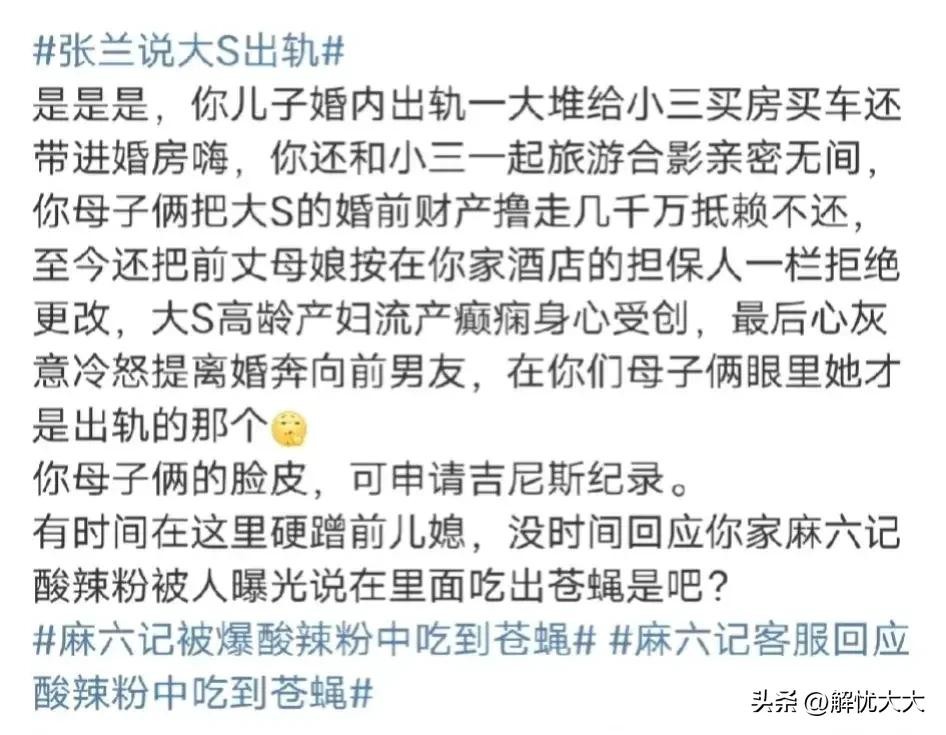 笑死了!大S复出受刺激,张兰四处留言说她出轨,却被网友狂怼