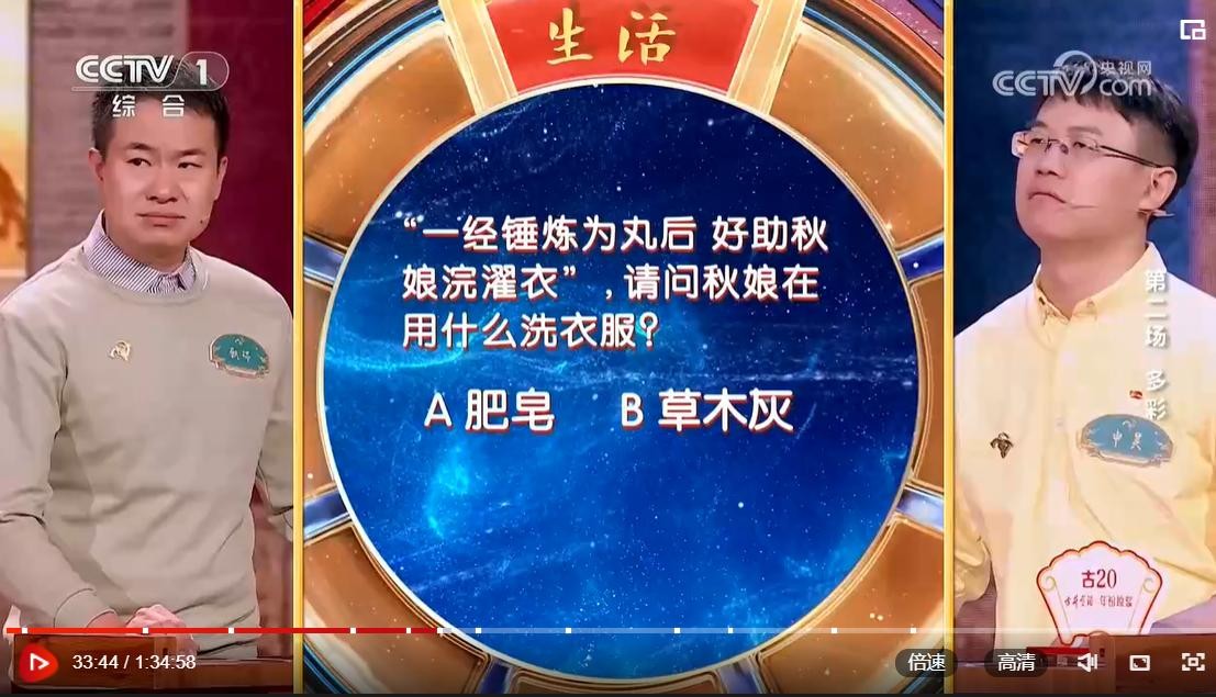 一道关于肥皂的题目,命题材料是一道生僻的清代诗词,无论是导师还是主持人,所说的内容均与后面紧跟着的洗衣液广告紧密衔接,更是引发了网友的吐槽:这道题难道是专门为广告服务的吗?