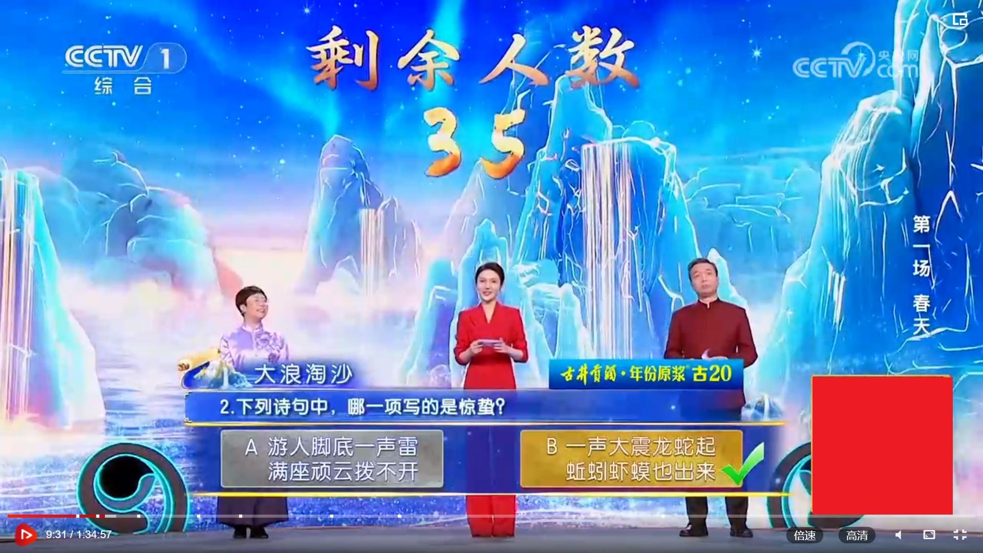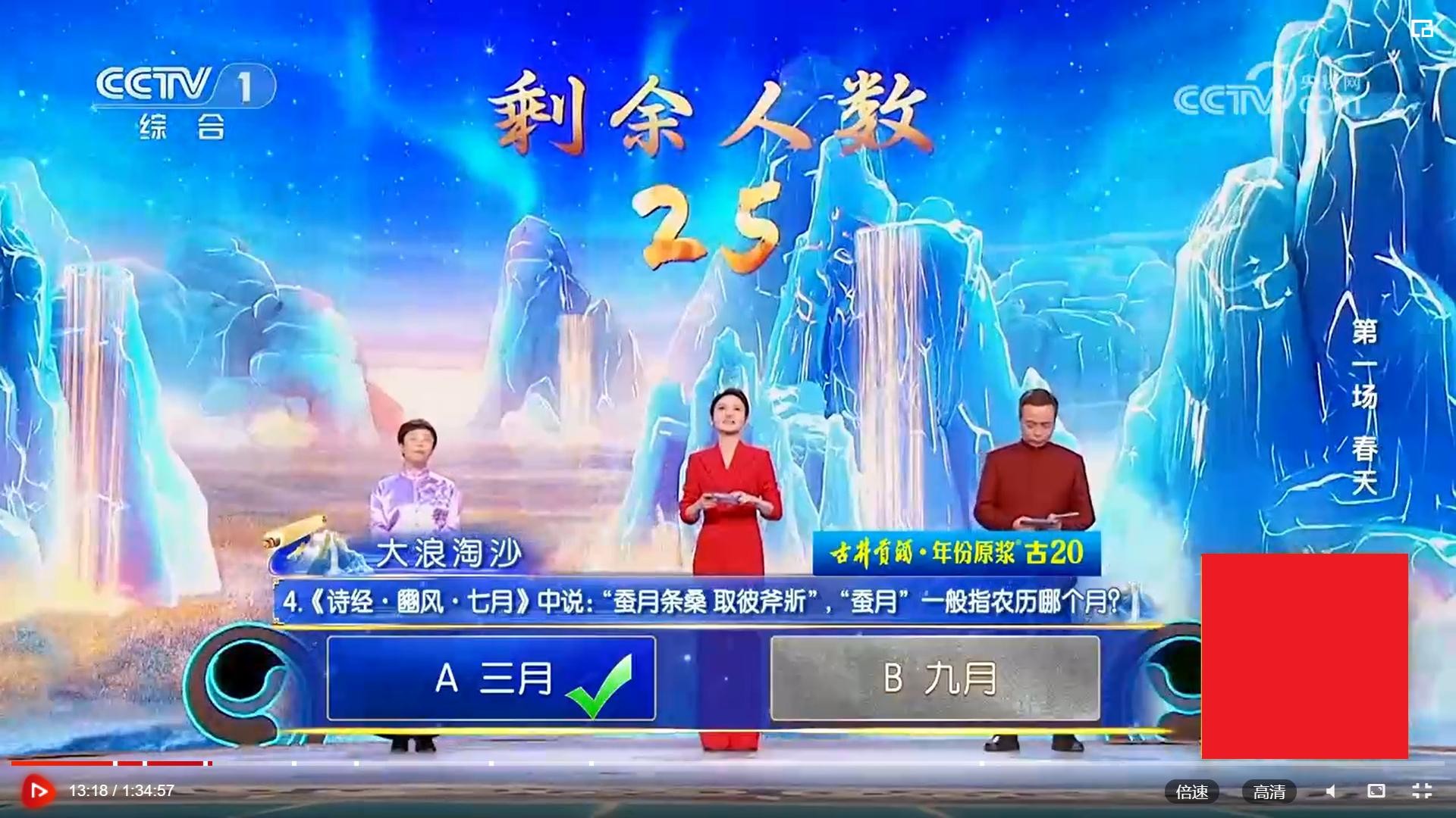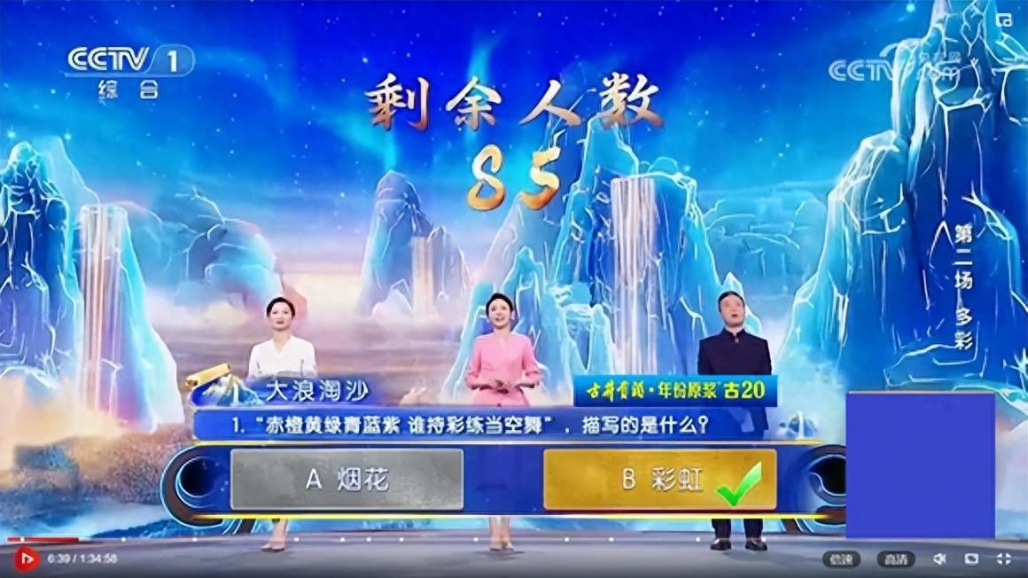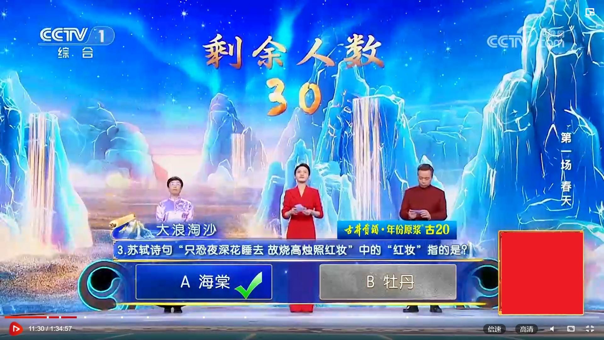 “大浪淘沙”的第一题,竟是去年决赛最后一题。看样参加诗词大会,把以前的题目弄个滚瓜烂熟很重要。