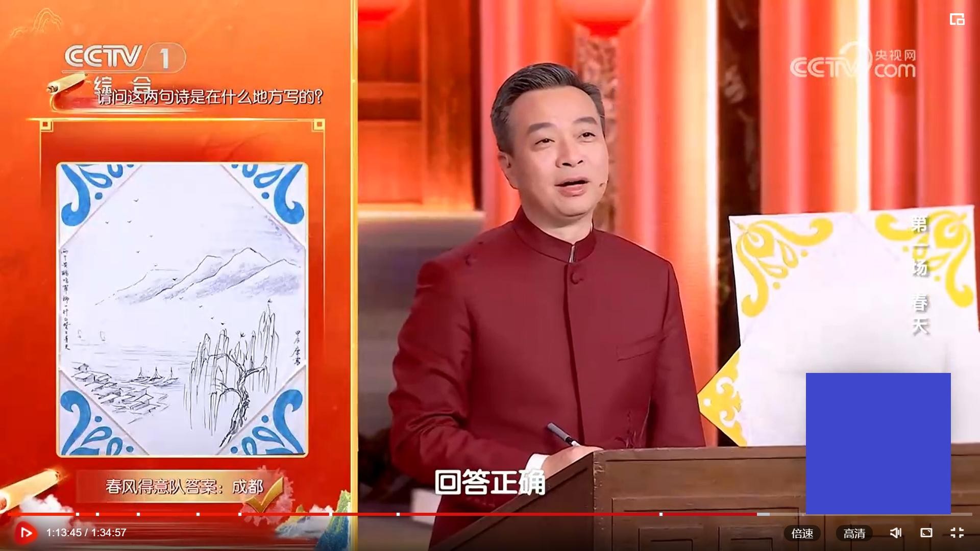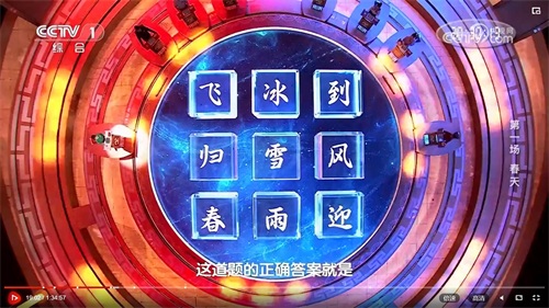宫格题,是伟人诗词专场,很容易找到这个规律,所以有的选手未卜先知。