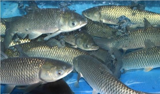 3、草鱼:体呈茶黄色,腹部灰白,偶鳍略带灰黄,奇鳍稍暗。栖息于江河、湖泊的中下层。为草食性鱼类。3—4龄性成熟,4—7月在江河流水中产卵,卵为漂流性.膜径约5mm。是中国淡水养殖的四大家鱼(草鱼、青鱼、鲢、鳙)之一。