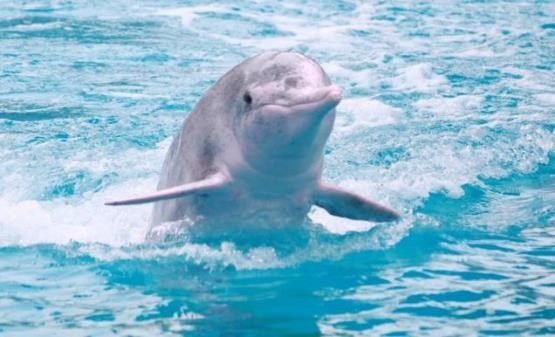 15、中华白海豚,鲸目、海豚科。系暖水性沿岸型种类。体长可达2.5米,雄大于雌。喜在港湾及江河口浅水域活动。国家一级保护动物,严禁猎捕。