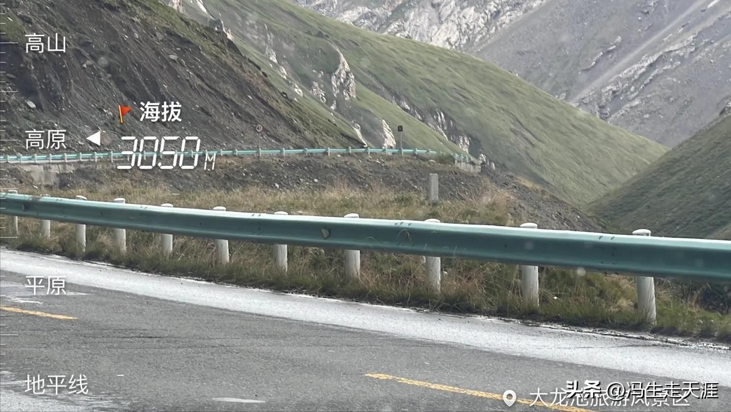 下面是大龙池风景区路边,海拔3050米,这里已经过了和静县铁力买提达坂(海拔3400米);.这里有个小停车区,我在这里休息了37分钟;
