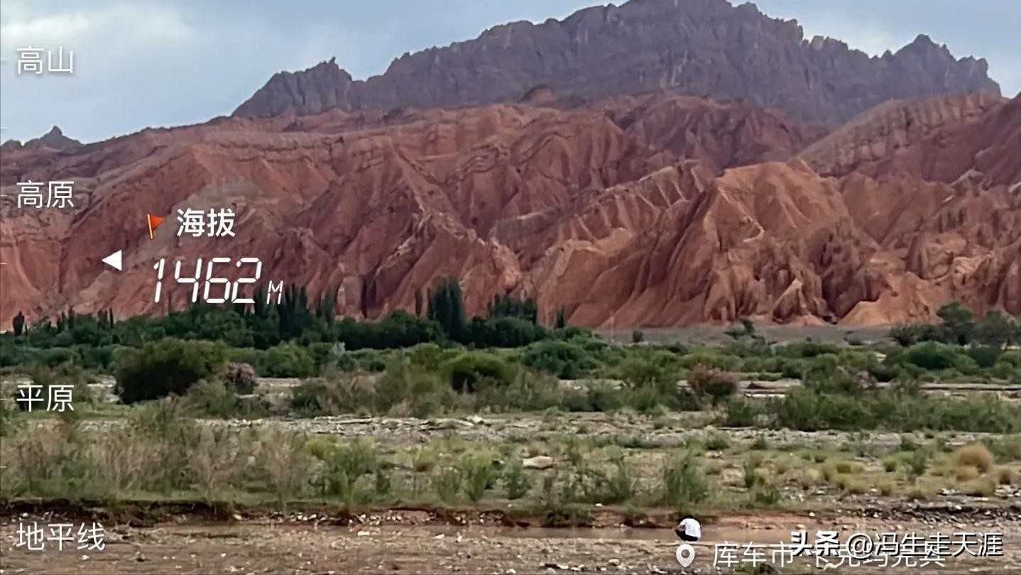 下图的山体叫红林染天景区!这一带G217国道又向东回到了库车市境内;