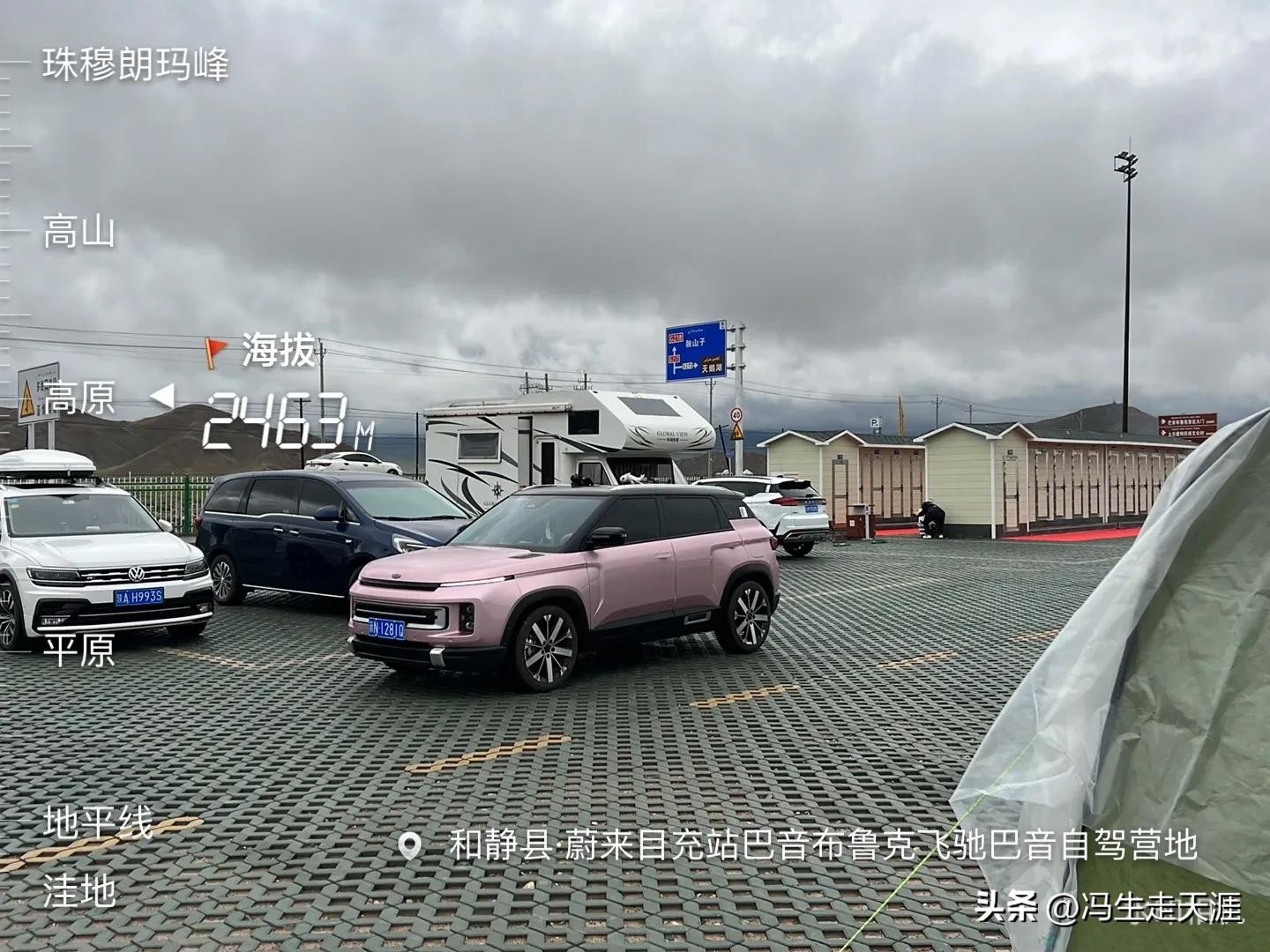 当晚我们驻车在巴音布鲁克镇天鹅湖观景台停车场,是一个新的停车场,有上千个车位,配套了24间WC,停车场在巴音布鲁克镇南面3公里,导航可以设:巴音布鲁克镇,停车场目前免费;
