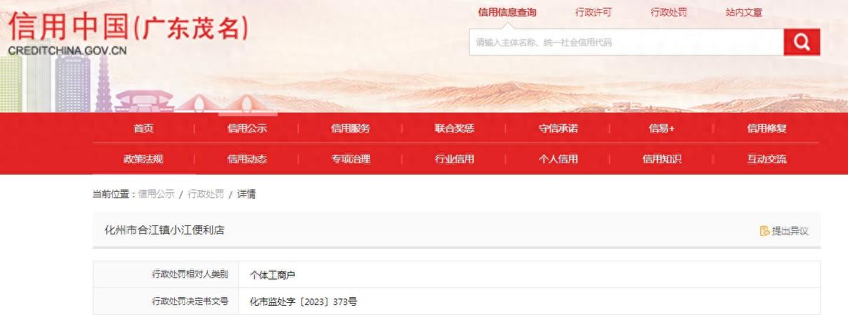 中国质量新闻网讯 近日,信用中国(广东茂名)网站发布一条处罚信息,涉及化州市合江镇小江便利店,该店无烟草专卖零售许可证经营烟草制品零售业务。具体信息如下: