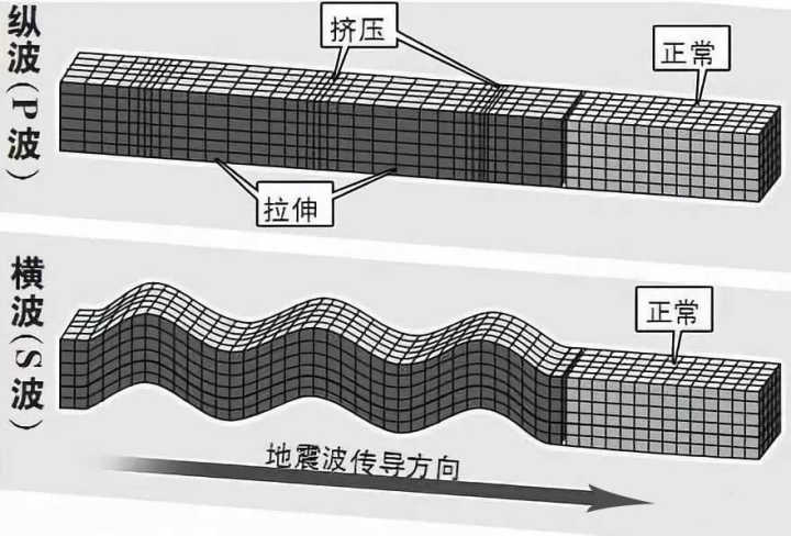 发生地震时人们先感受到了上下的颠簸,随后而来的是左右的摇晃。那是因为地震中纵波传播速度是大于横波的,所以纵波总是先到地面,随后而来的便是横波。因为是左右摇晃,所以绝大多数建筑在没有防震措施下就会坍塌。