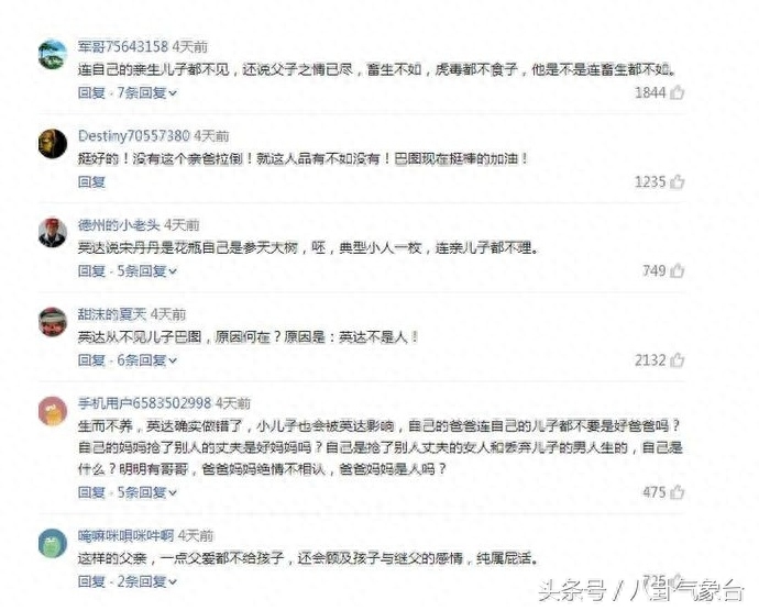 后来,记者采访了英达,让他谈谈此事,结果赢得却说:“我如果和大儿子见面,是怕伤害他和他继父的感情,产生不好的效果。所以这些年就不见。”而之前接受采访,英达还说:不知道自己的小儿子能不能愿意和另一个孩子分享父爱,所以不能对巴图和对小儿子一样好。还说出“与巴图的父子缘分就这么长”的狠话。如此说辞,真是强词夺理,所以这段话也让大众对英达非常不满,纷纷批评他没人性。