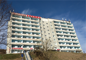 我们此行入住在花岗岩酒店,在海参崴据称是三星宾馆(第二天天晴拍的,图片亮丽了很多),耸立在高高的半山腰,房间干净舒适,而且意外地还在供暖,顿时驱散了室外阴凉带来的一丝丝寒意。办理入住后,晚餐安排了俄罗斯海鲜大餐。