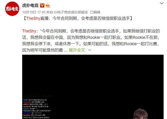 当然了,Theshy也只是可能在今年退役,他在下一段中还接着说道:我想和Rookie一起打比赛,如果Rookie不在那,我想我可能会停下来,或者休息一下,如果可能的话,我想和Rookie一起打比赛,因为明年可能是他的最后一年!