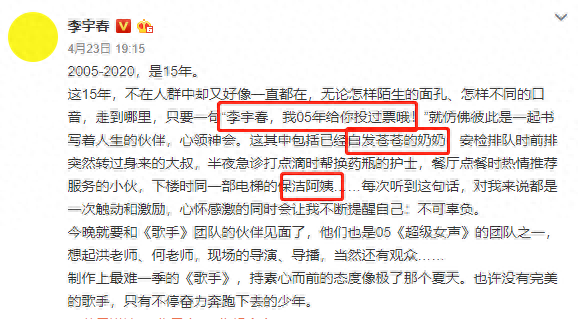 15年过去了,她仍然是最成功的选秀明星,因为只有她是几百万中国人一票票选出来的“偶像”。她曾经在微博中写到,直到现在都会有人说“05年我给你投过票”。