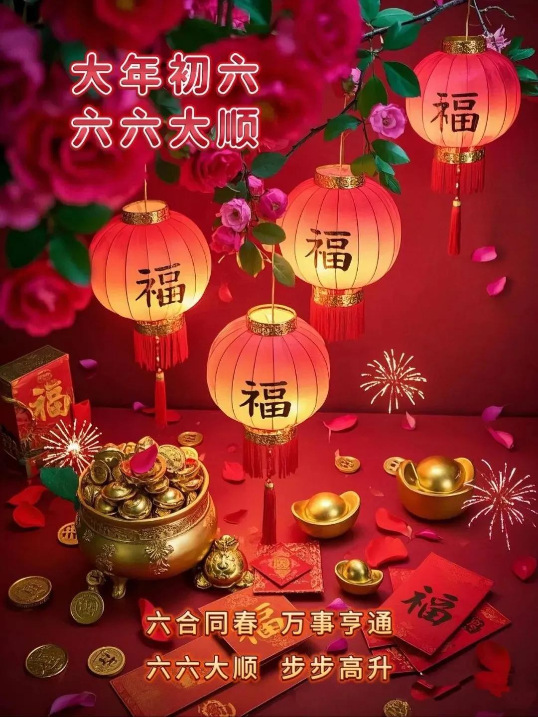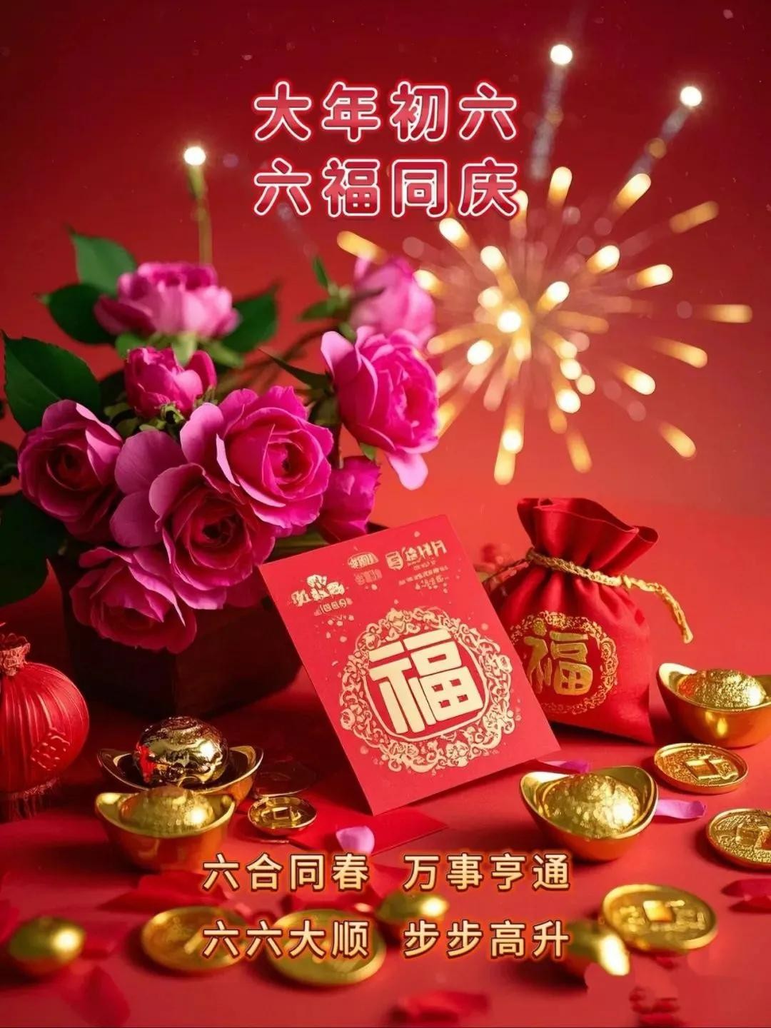 大年初六六,六六大顺拜年祝福语配图,高级感满满,赶紧用起来!
