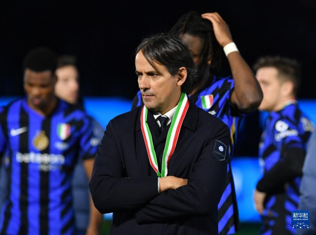 1月6日,国际米兰队主教练因扎吉在颁奖仪式后神情沮丧。新华社/路透