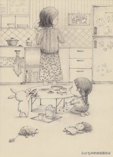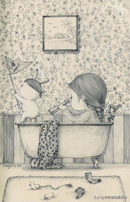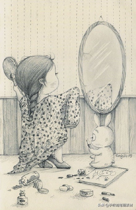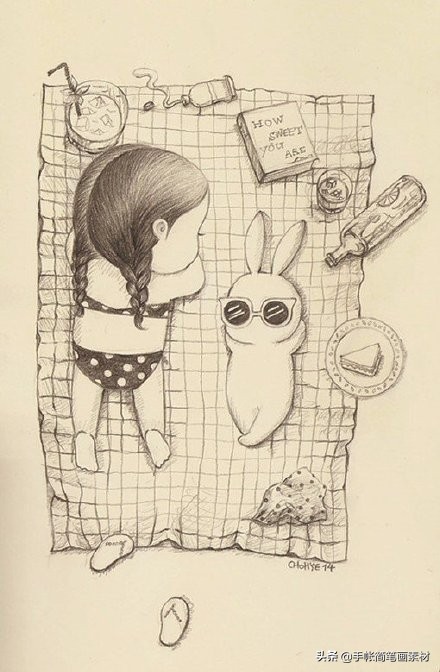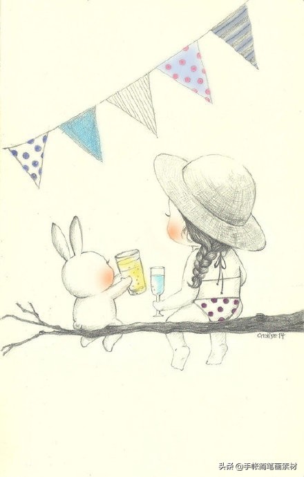 一支铅笔就能画的可爱女生小插画