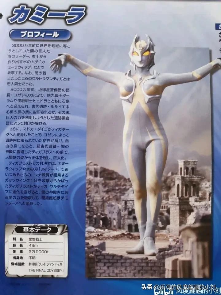 爱憎战士卡蜜拉是3000万年前黑暗迪迦的恋人,当时的地球先后被怪兽和巨人统治,在打败了所有的怪兽后,巨人们为了自己的利益而开始了内战。最后卡蜜拉带领黑暗迪迦、达拉姆和希特拉一起打败这些巨人。