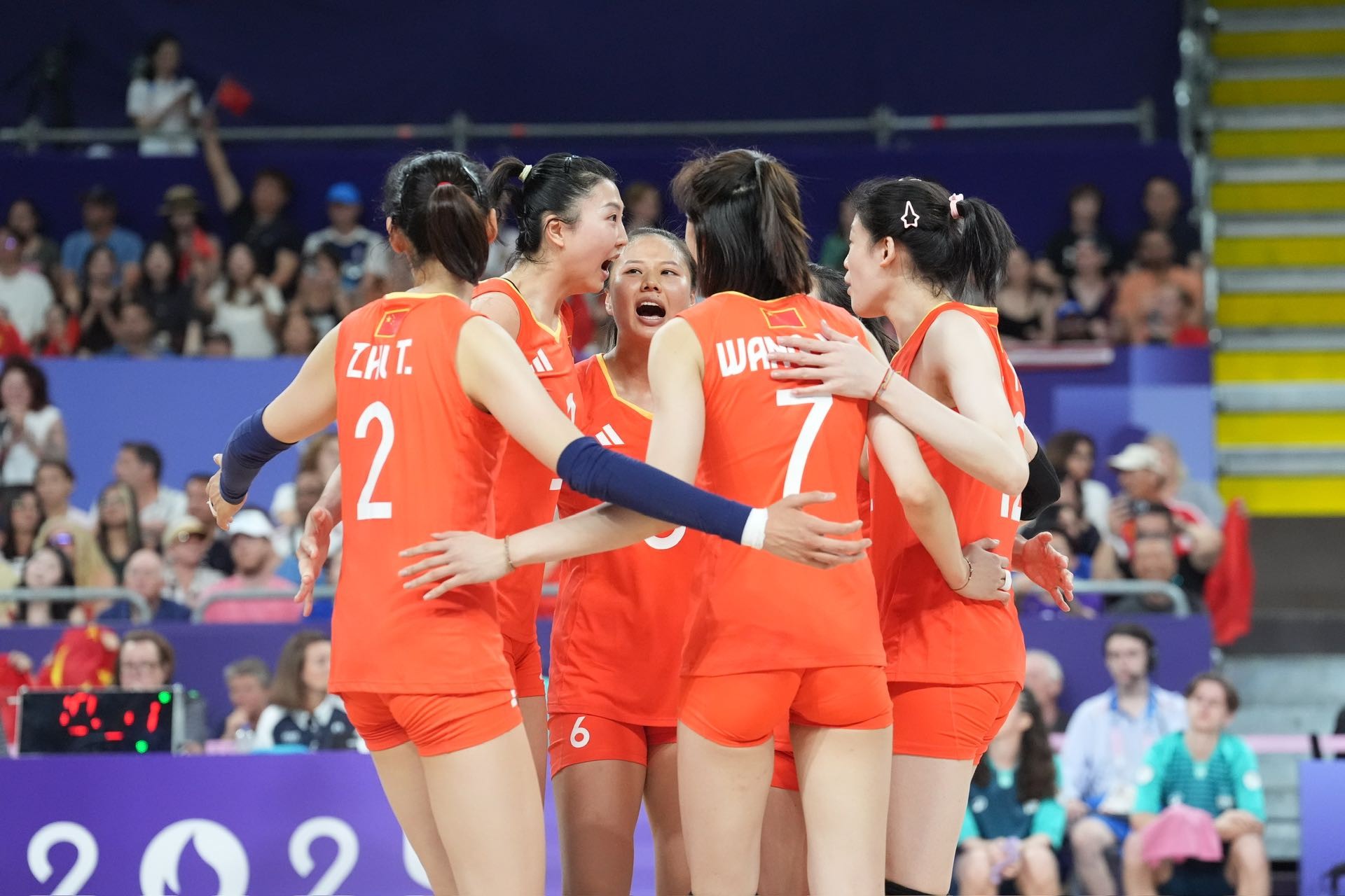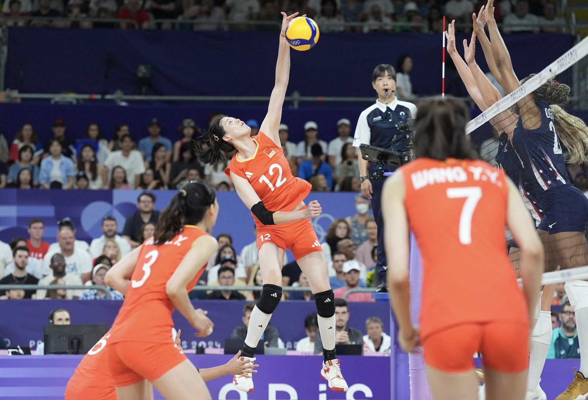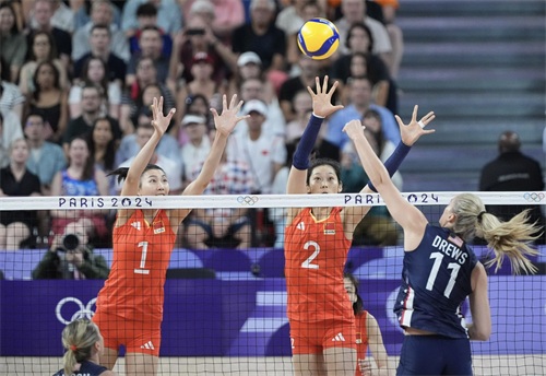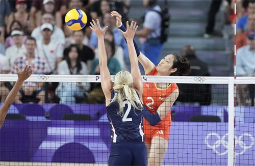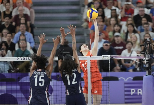 7月29日,在巴黎奥运会女子排球小组赛中,中国队对阵美国队。