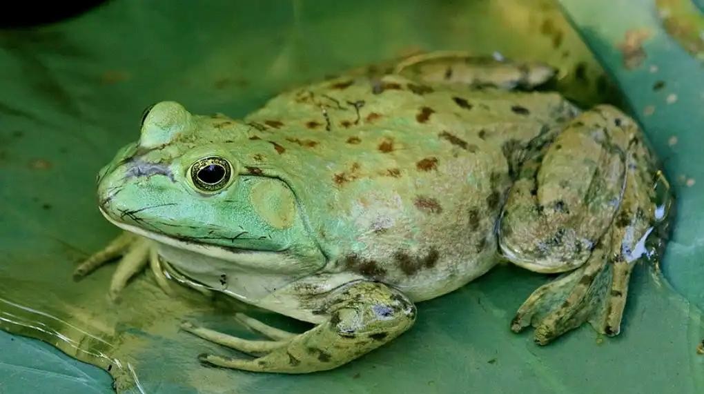 牛蛙原产于北美洲,它的肉质非常的鲜美,一直以来都是人们非常喜欢食用的一种蛙类。现在的市场上,也有许多人在人工养殖牛蛙,以满足人们对牛蛙肉的需求。大量的人工养殖也会对当地的生态环境造成一定的影响,因此在进行人工养殖的时候,一定要注意保护当地的生态环境。