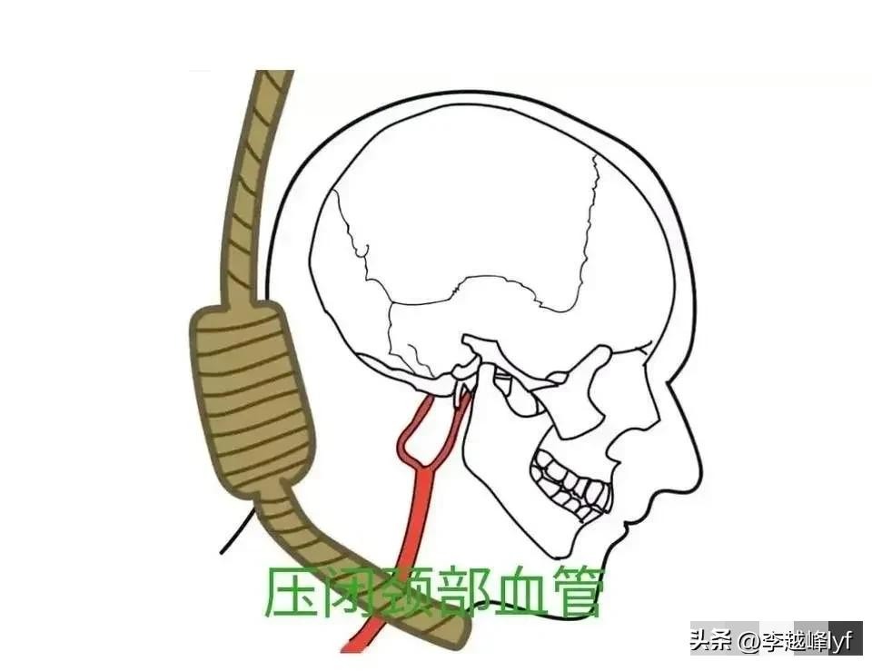 喉咙被绳子勒得越来越紧,颈动脉窦就会感受到外力的攻击,于是迷走神经会自动的降低心率和血压,然后让人感觉浑身无力,哪怕你痛苦到了极点,手臂也抬不起来了,那又怎么能够自救呢?