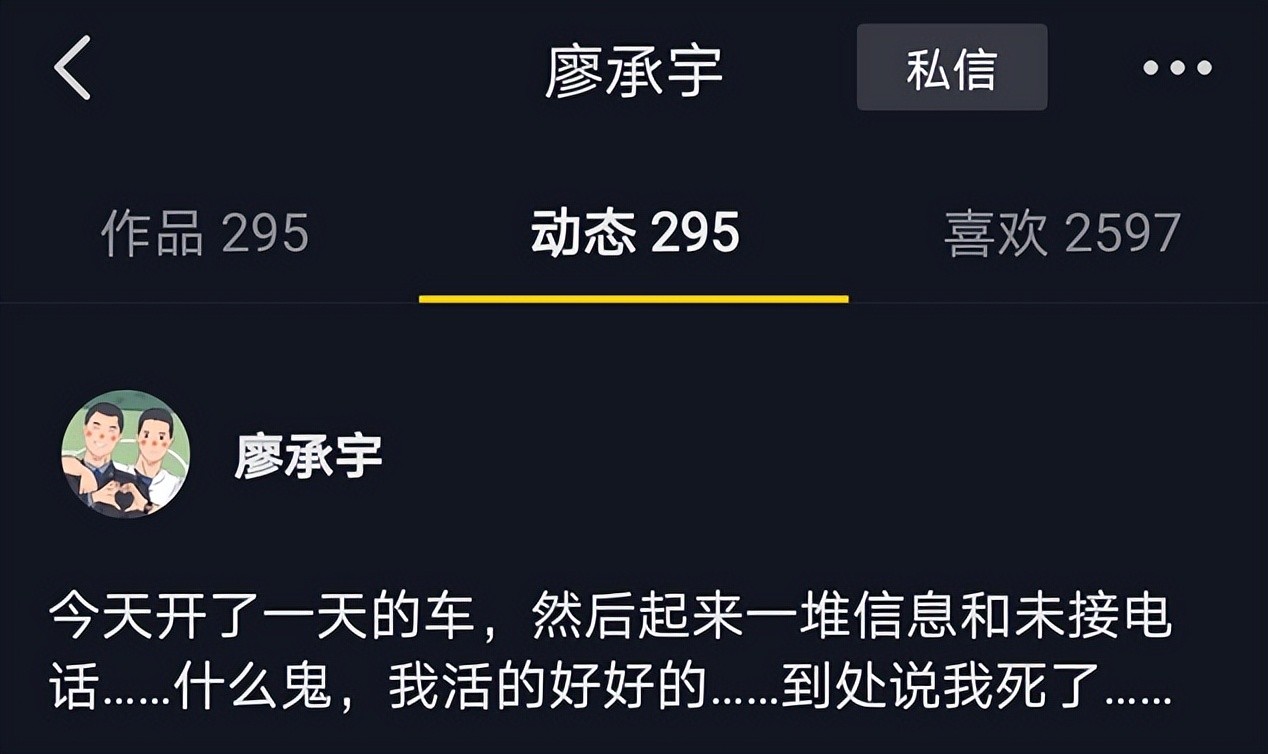 事件大概是说,自己的某音账号被盗了,发布了一条“死亡”信息。然后自己并不知情。开了一天的车,等反应过来处理的时候,已经上了热搜,来不及了。之类的。