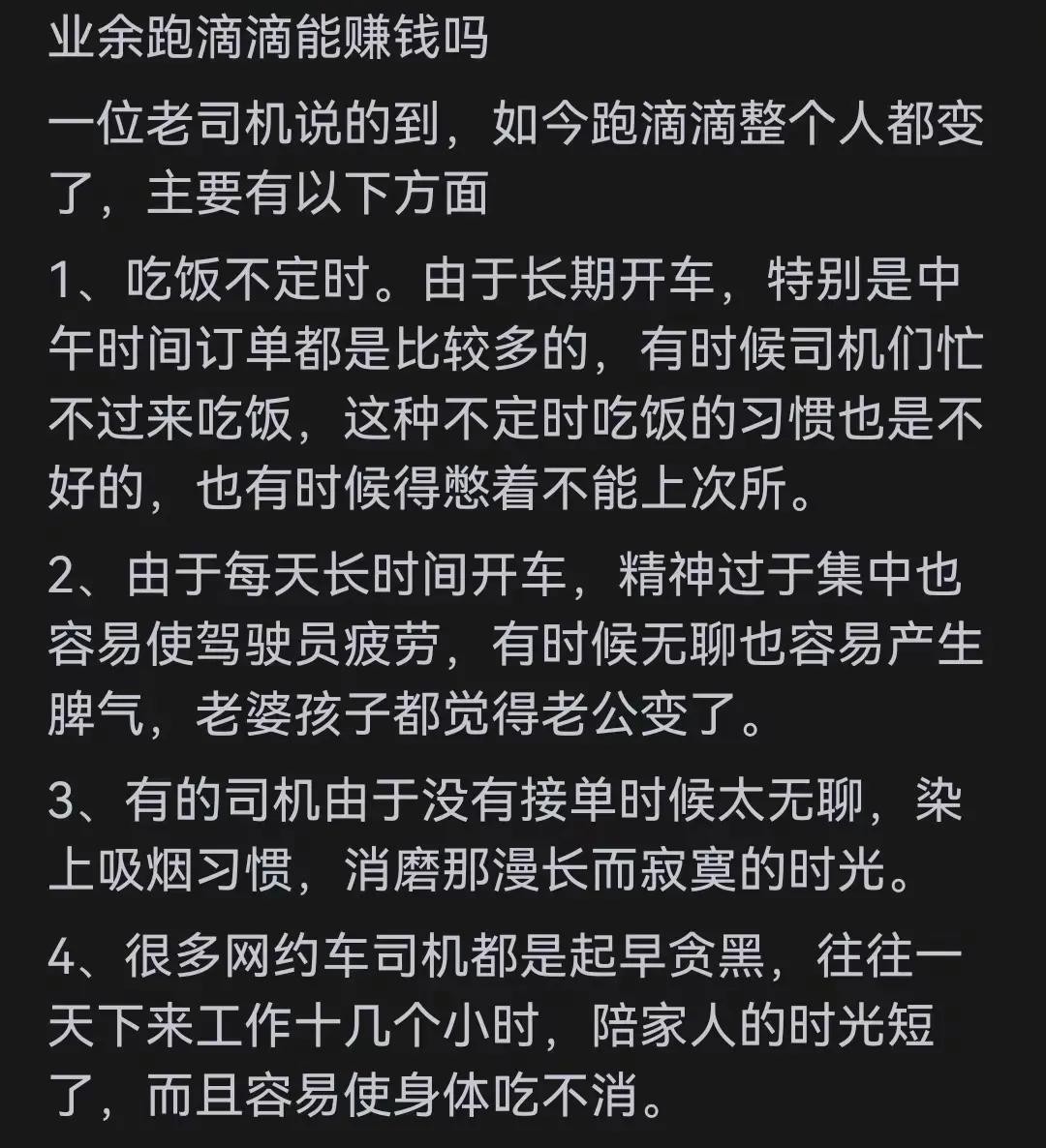 不过话说回来,滴滴司机也有他们的乐子。每天能遇见形形色色的人,听听他们的故事,也挺有意思的。