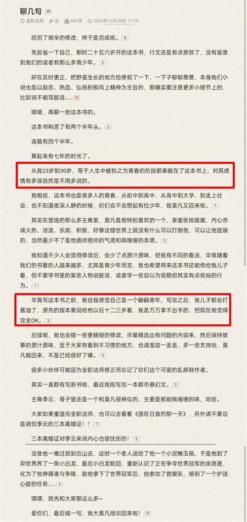 乱也在解封后专门发了单章说了一下这件事,已经确认改完后更加积极向上,也能让十几岁的孩子看了。