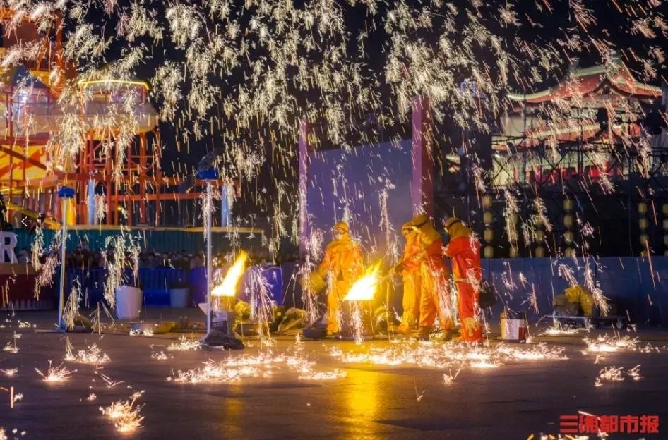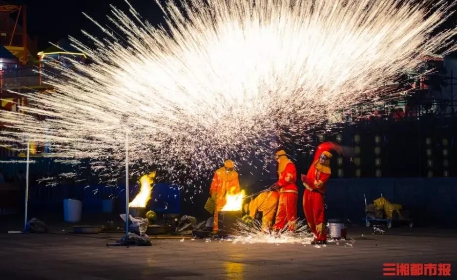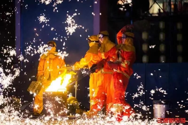 1800℃的铁水,在他的手中仿佛有了生命。他用勺子将铁水舀起,然后用力地抛向空中。瞬间,铁水在空中散开,如烟花般绚烂夺目,形成了一片“璀璨星河”。每一次打铁花,都是一次对技艺的考验,更是一次对美的诠释。
