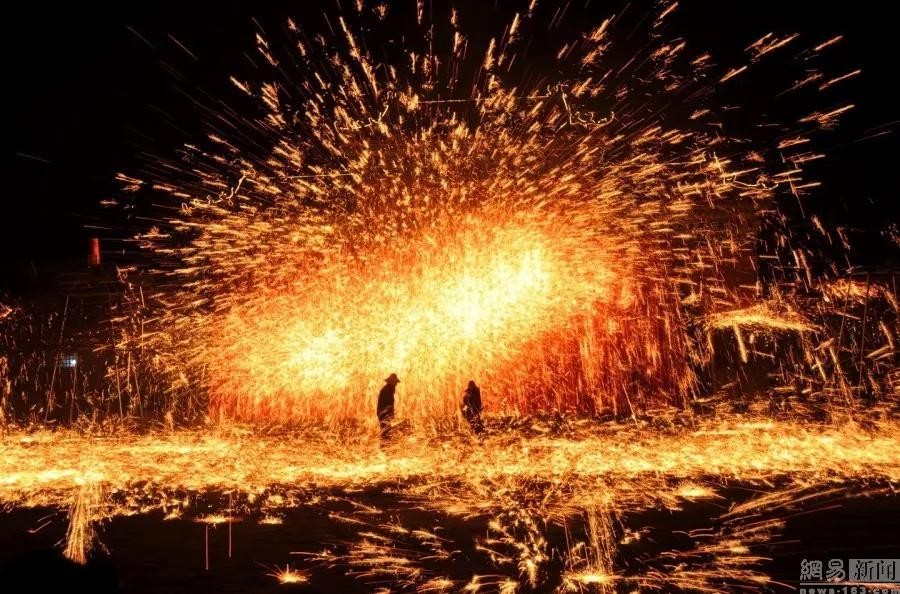 小伙用1800℃铁水打出各种样式如烟火般绚烂夺目