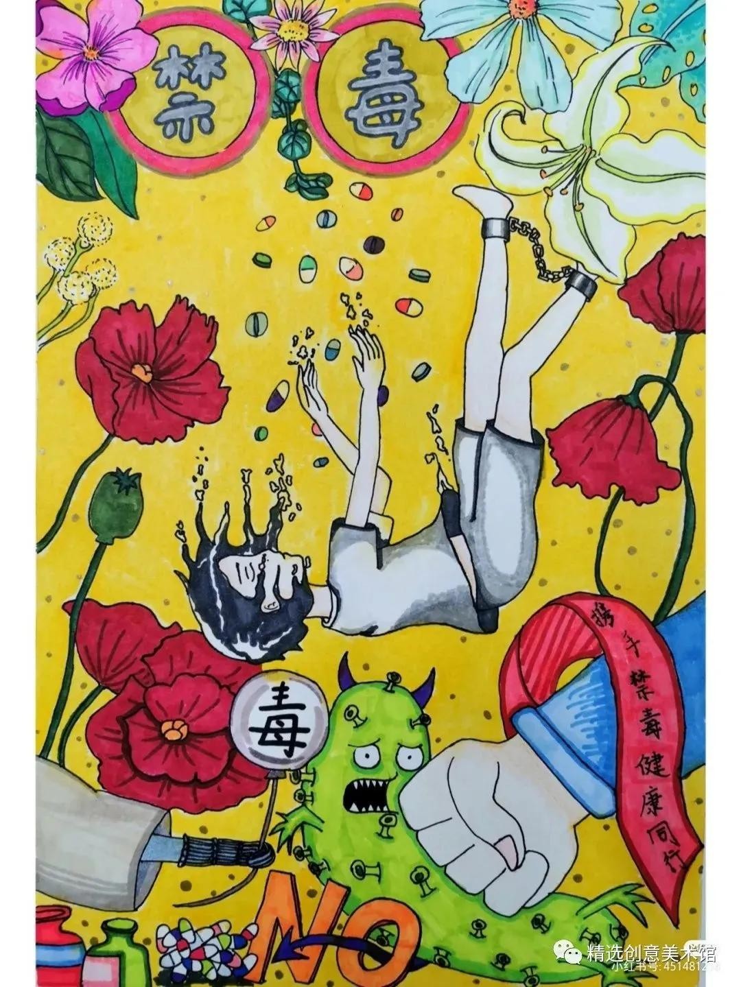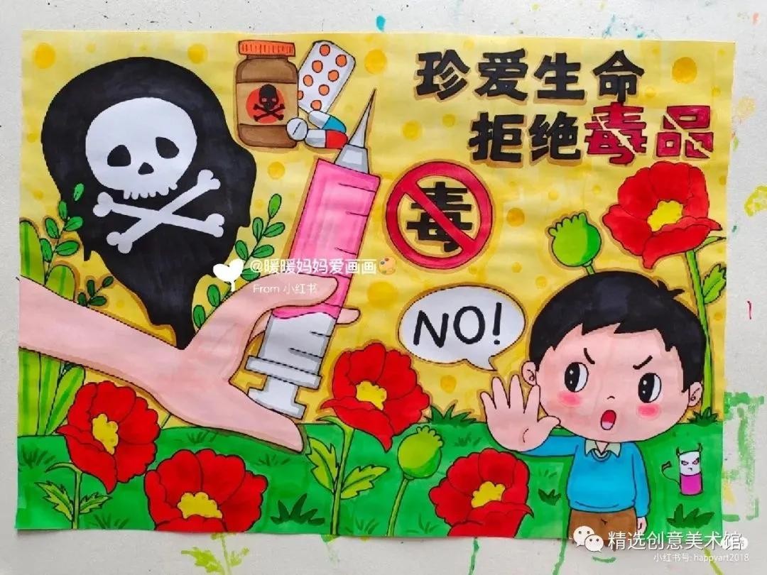 精选19张禁毒宣传画,抵制毒品,珍爱生命!范画创意十足呦!