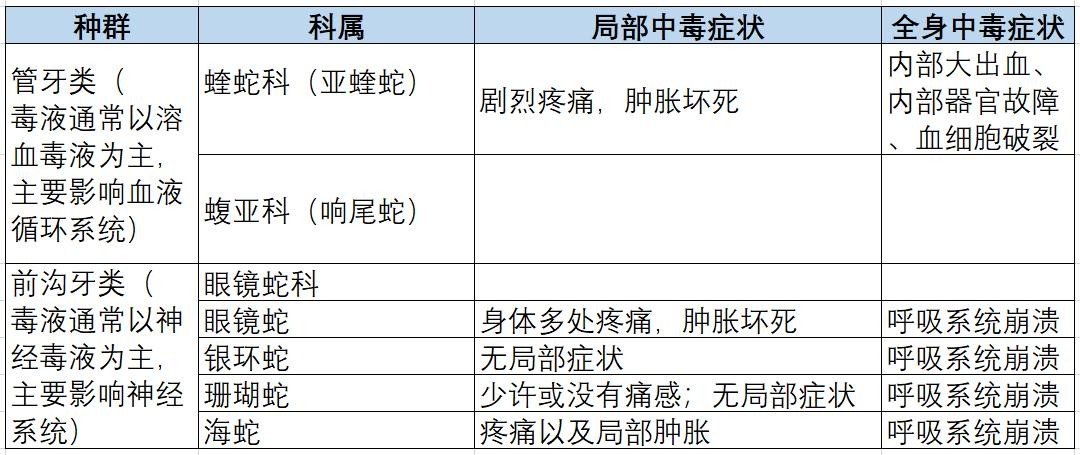对人类有危险的蛇一般分两类:前沟牙类与后沟牙类