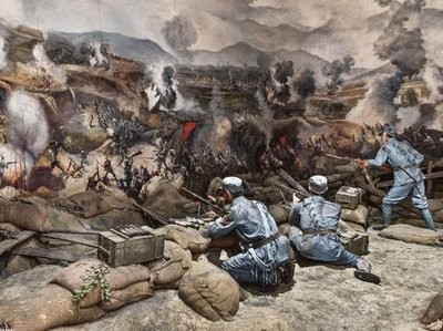 所有人都没想到,他们竟然凭借两条腿赢过了坐着汽车的美军。山上光秃秃的,几乎无险可守。在团长的指挥下,战士们用双手,刺刀挖了几条战壕。他们的双手早已血肉模糊,可没有一个人叫苦喊累。一个多小时,335团就修建好了防御工事。美军先头部队率先抵达这里,看着眼前的志愿军,美军不由得大笑。335团的总兵力仅仅是美军先头部队的五分之一。在人数如此不对等的情况下,可想而知战斗的惨烈程度。美军直接出动了飞机和大炮,对飞虎山阵地展开了近一小时的轰炸,335团修建的防御工事几乎化为灰烬。随着火力的减小,美军派出一个排的兵力发动进攻。在他们眼中,飞虎山上的志愿军基本已经被消灭,即便有幸存的也肯定没了反击能力。因此这支队伍十分松散,在穿过前沿阵地后,他们竟胆大到单独行动。等他们走进射程范围进行奇袭。