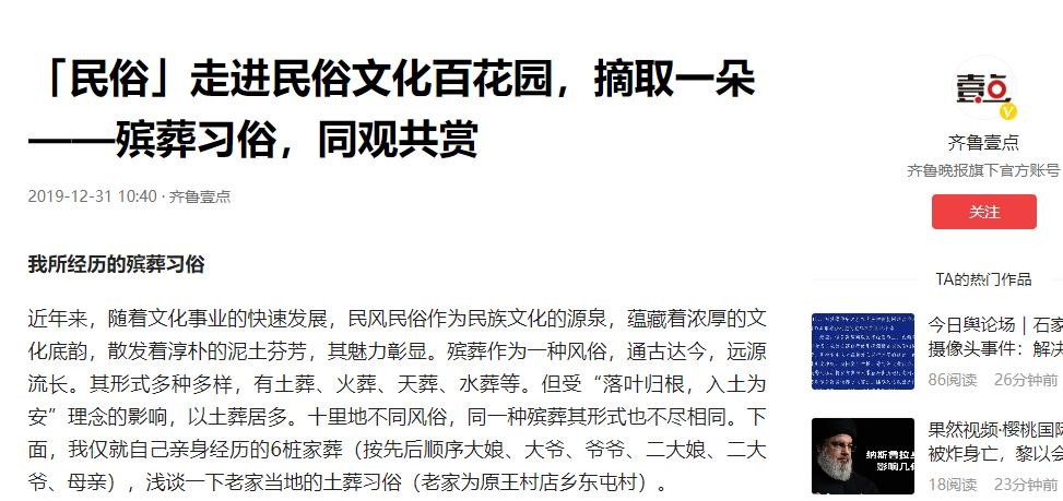 齐鲁壹点——「民俗」走进民俗文化百花园,摘取一朵——殡葬习俗,同观共赏
