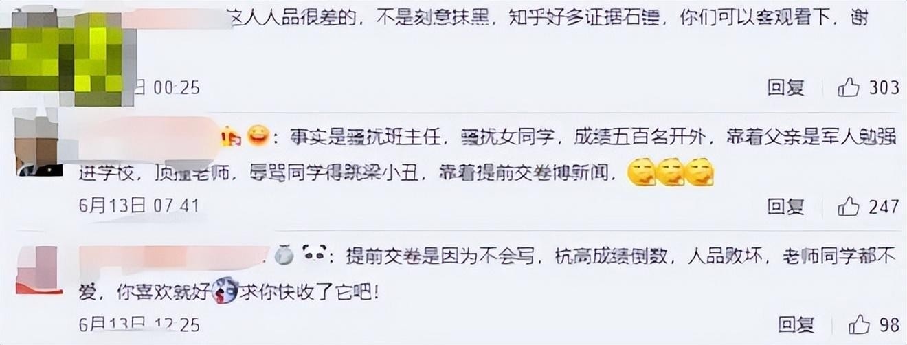 也许这就是他不敢说自己真名的理由吧!最终他也没有进入自己梦想的浙大,但网友纷纷评价他“活该”!