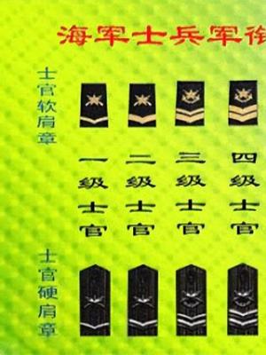 士官图军衔分为部队六级:一级士官、二级士官、三级士官、四级士官、五级士官、六级士官,七级士官