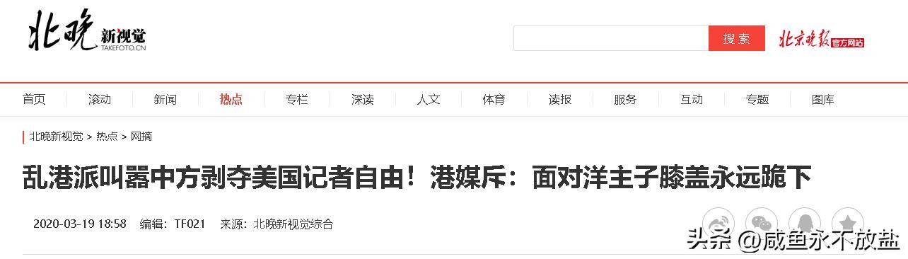 5.北晚新视觉2020.03.19《乱港派叫嚣中方剥夺美国记者自由!港媒斥:面对洋主子膝盖永远跪下》