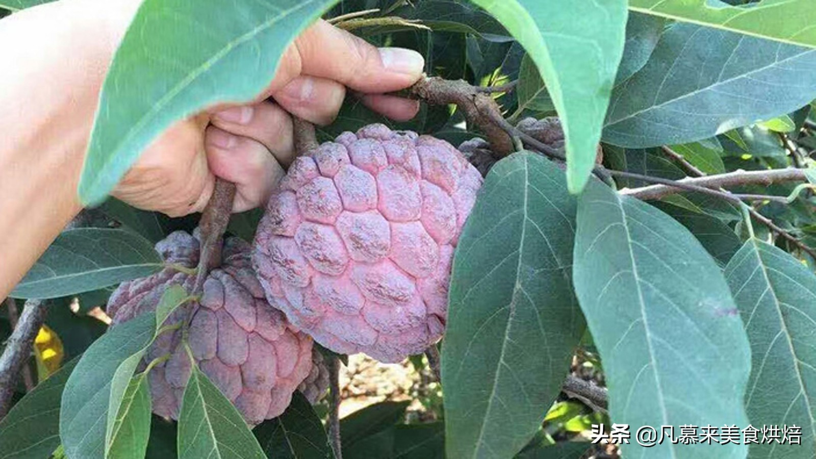 释迦果:别名番荔枝、赖球果、佛头果、林檎等。番荔枝属落叶小乔木;树皮薄,灰白色,果实由多数圆形或椭圆形的成熟心皮微相连易于分开而成的聚合浆果圆球状或心状圆锥形,无毛,黄绿色,外面被白色粉霜。花期5-6月,果期6-11月。被誉为世界名果的玫瑰释迦果,表皮是紫色的,拥有独特惊艳的味道,独特的香味,富含花青素、蛋白质、铁、钙、维生素以及膳食纤维。