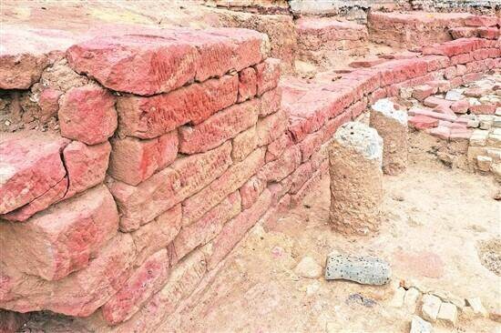 南海卫城墙基址红砂岩包墙石 羊城晚报记者 王俊伟 摄