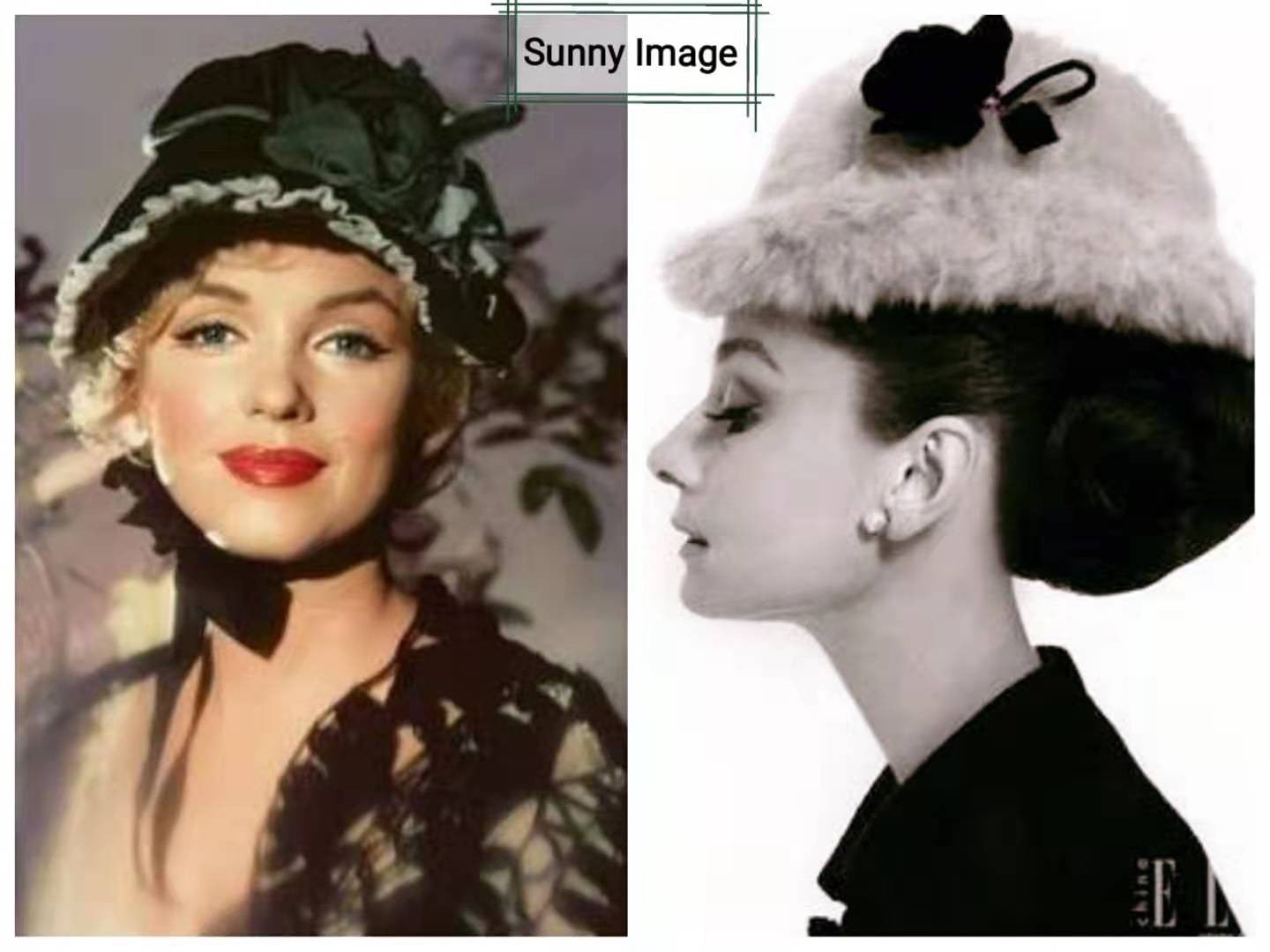 赫本和梦露戴帽子的照片