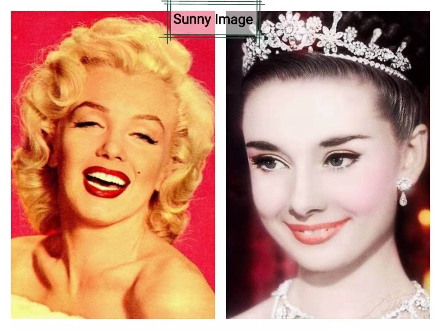 ◎ 赫本与梦露的五官和轮廓风格不同,赫本趋向于直线条较多,目光直接,炯炯有神;梦露则是曲线型五官轮廓和体型。