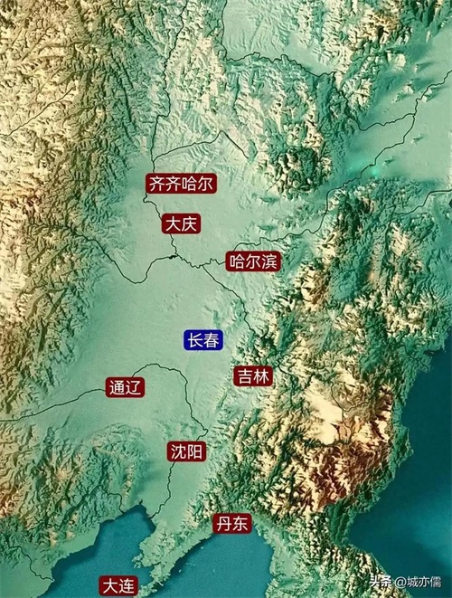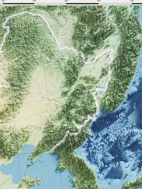 图18,以东北平原为第一视角的东北亚地区地形图一览