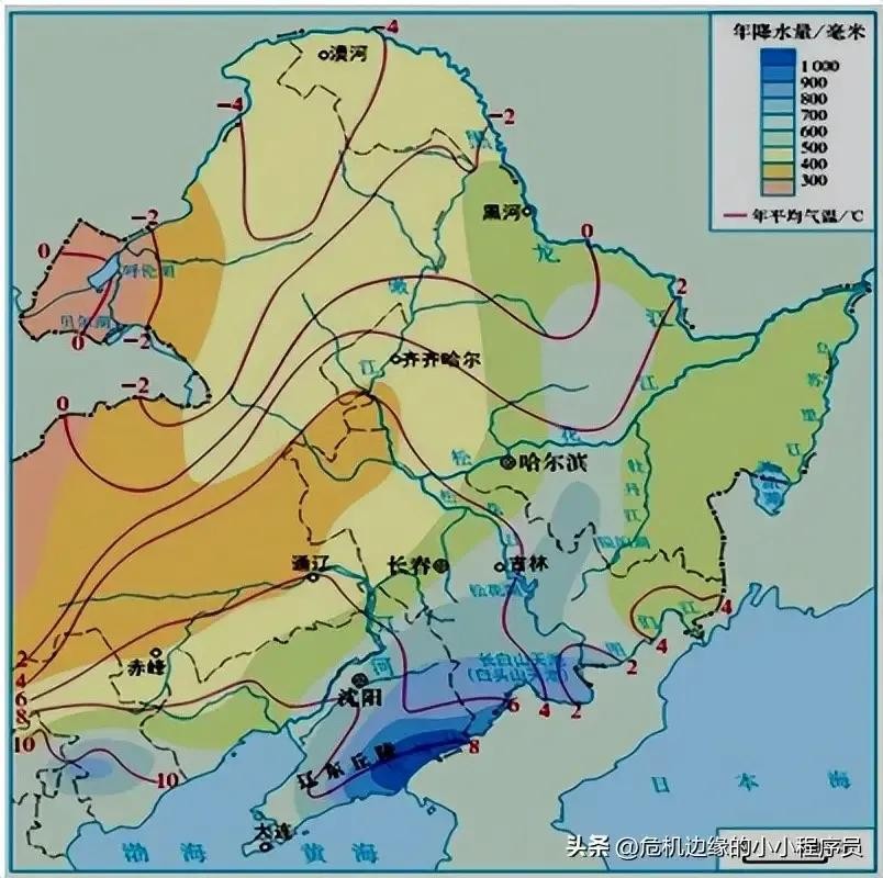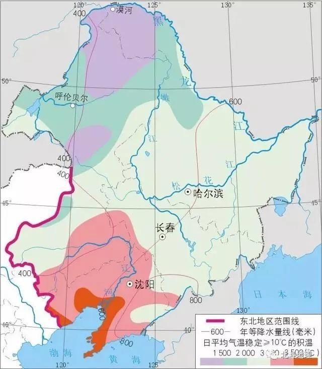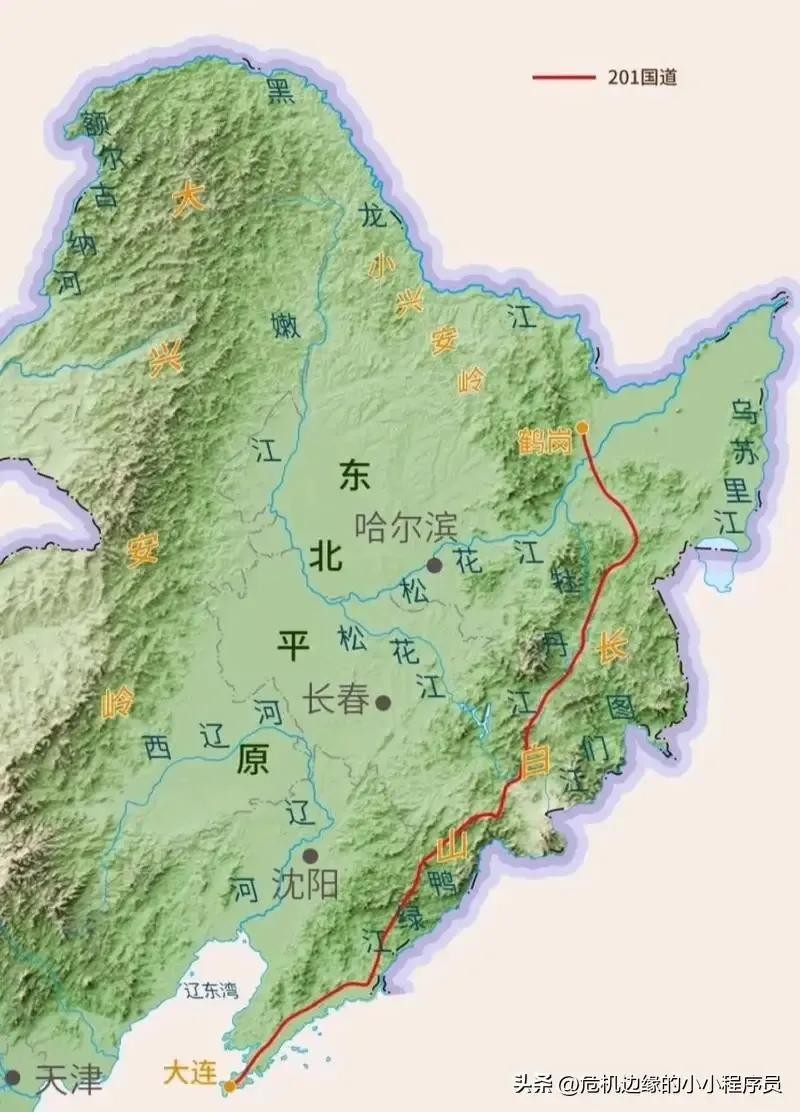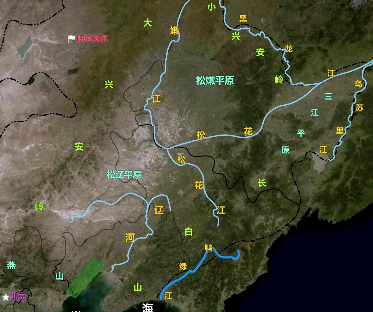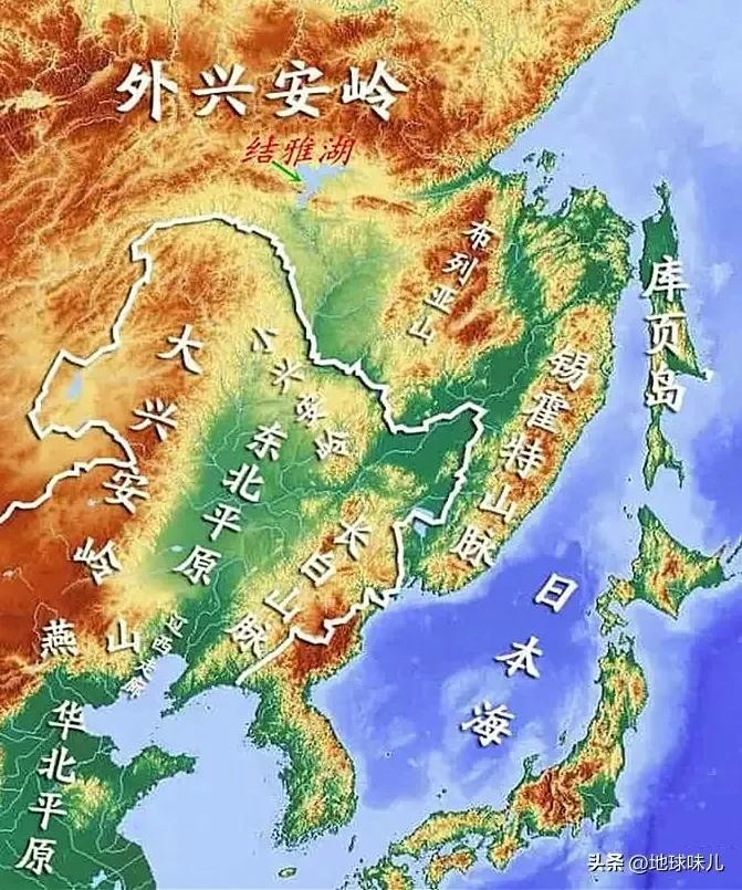 可以很直观看到东北地区的山脉(燕山、长白、大兴、小兴)